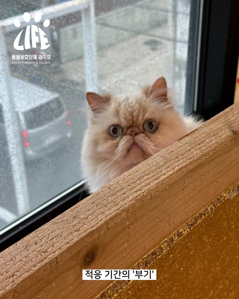 현장은 어수선했고, 낯선 사람들의 방문에 놀란 눈을 한 고양이를 마주했습니다. 아이는 배가 고팠는지 사료 봉투를 뜯어 먹으며 버텨온 듯 보였습니다.