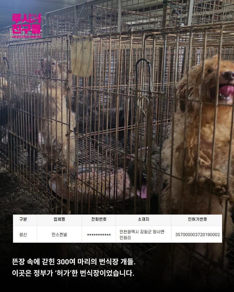 2025년 7월 24일, ‘루시의 친구들’ 연대단체들은 지자체 및 경찰 입회하에 인천 강화도에 위치한 허가 번식장 ‘민스 캔넬’에서 학대 정황을 확인하고,