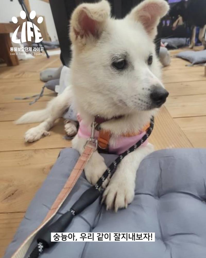 익산유기동물보호소 숭늉이가 라이프의 품으로 오게 되었습니다.숭늉이는 얌전하고, 무던한 성격을 가지고 있지만 호기심도 많아 몸은 고정되어 있어도 눈동자는 빠르게 움직인답니다.공고사진 속 숭늉이도, 저희를 처음 만난 숭늉이도 표정이 전혀 없었는데요. 함께 지내면서 예쁜 미소를 볼 수 있길 기대합니다.숭늉아, 앞으로 잘지내보자!숭늉이는 현재 도그어스플래닛의 도움으로 보호받고 있습니다!