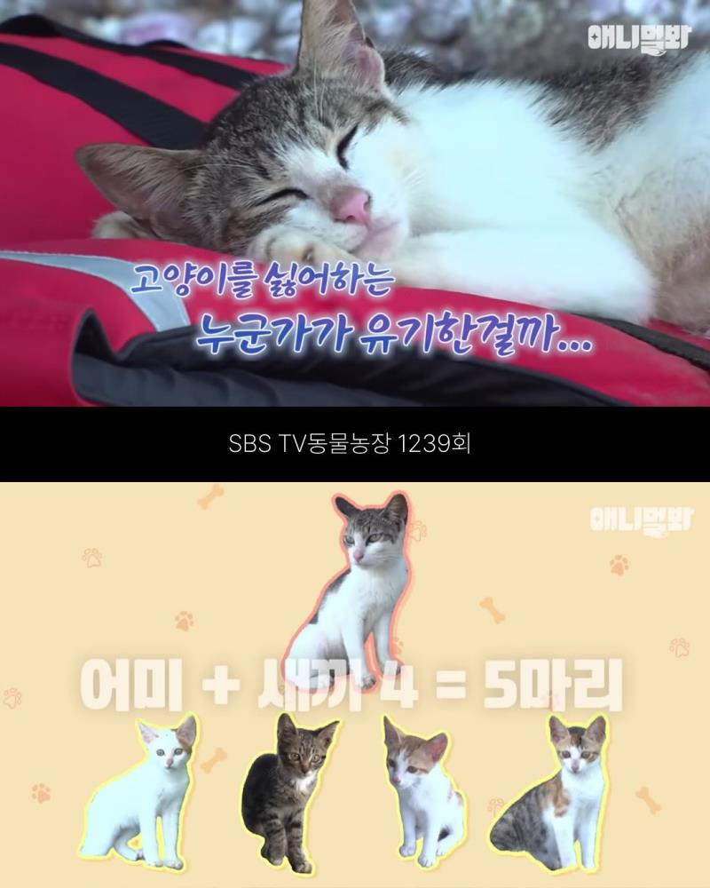 무인도에 갇힌 고양이는 어미와 네 마리의 새끼 고양이!