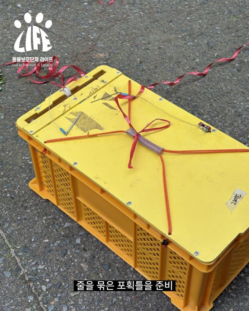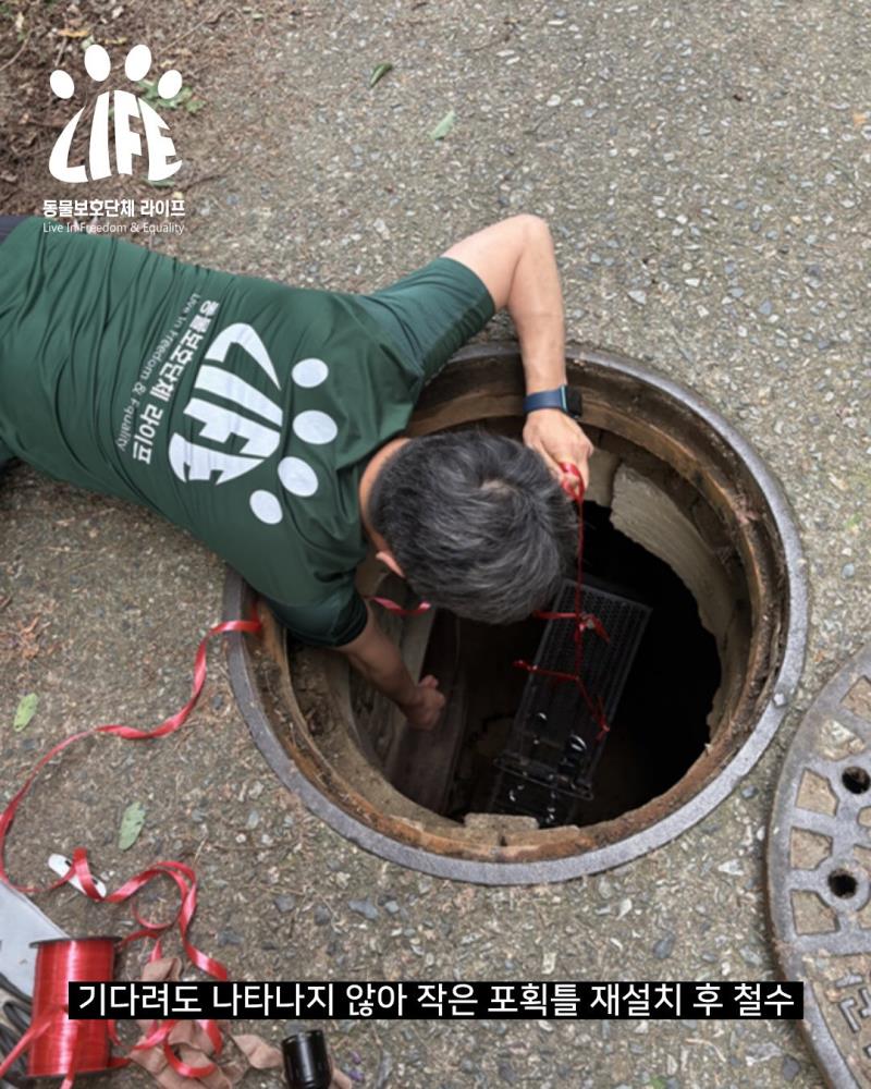 자주 보였다는 장소에 포획틀을 묶어 내렸고, 금방이라도 다시 나타날 것 같았지만.. 하필 인근에서 공사를 하는 바람에.. 큰 소리가 계속 나니 아이는 더욱 구석에 숨은 듯 했어요.