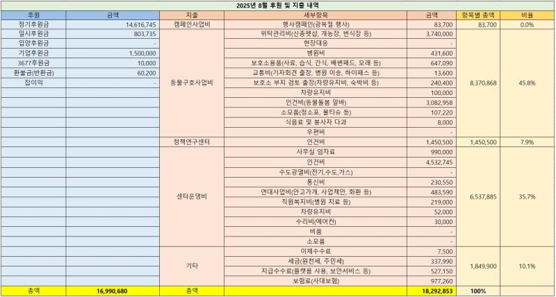 (사)동물보호단체 라이프는 투명하고 건전하게 운영됩니다.